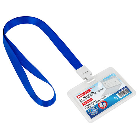 Горизонтальный бейдж BRAUBERG EXTRA для хранения пропусков и карточек сотрудников, ID-карт, проездных и банковских карт.