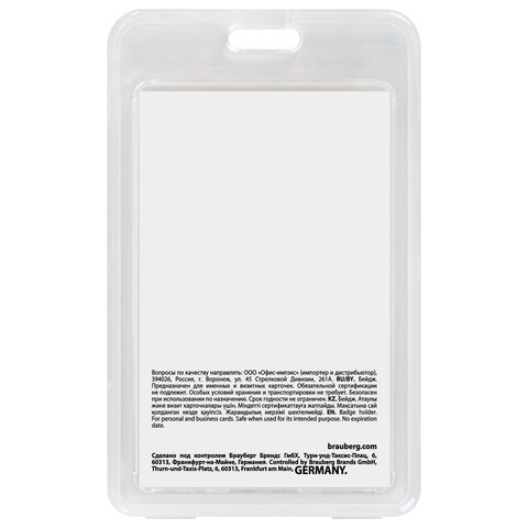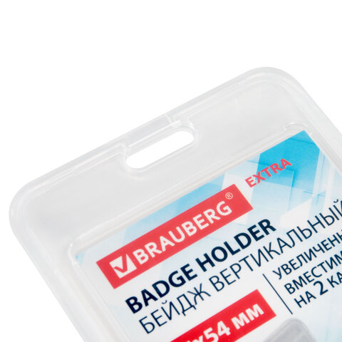 Вертикальный бейдж BRAUBERG EXTRA для хранения пропусков и карточек сотрудников, ID-карт, проездных и банковских карт.