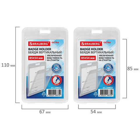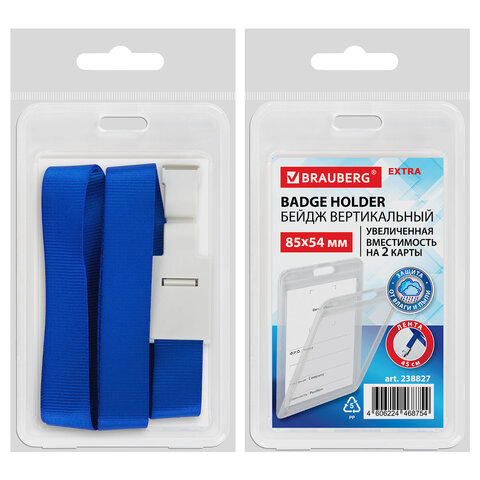 Вертикальный бейдж BRAUBERG EXTRA для хранения пропусков и карточек сотрудников, ID-карт, проездных и банковских карт.