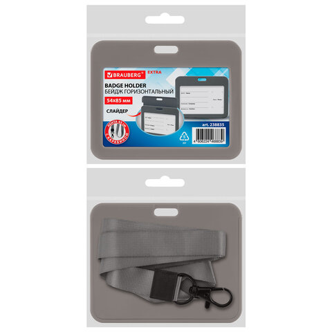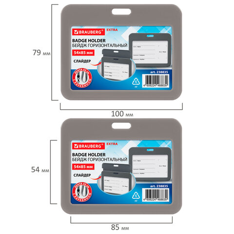 Горизонтальный бейдж BRAUBERG для хранения тонких пропусков и карточек сотрудников, ID-карт, проездных и банковских карт.
