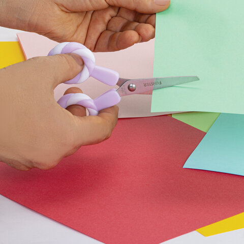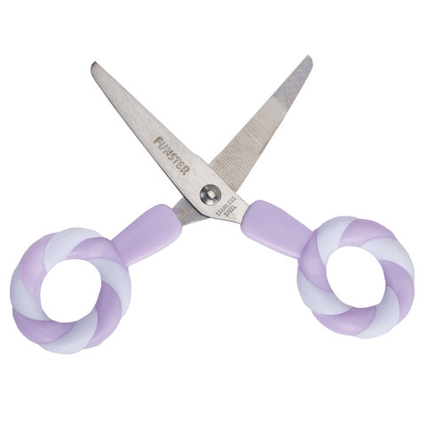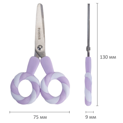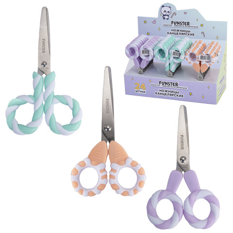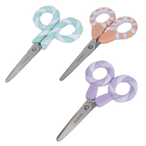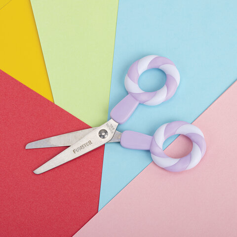 Ножницы FUNSTER с симметричными ручками-леденцами разработаны специально для детского творчества.