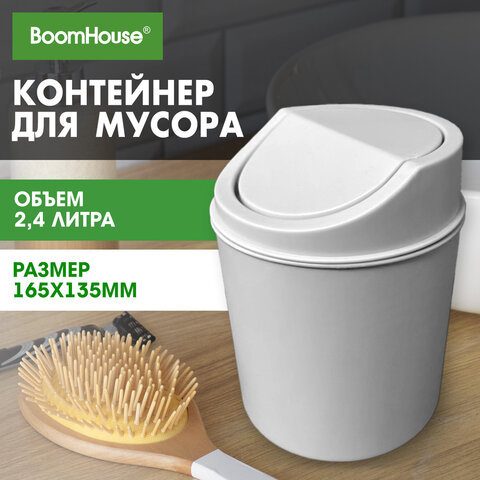 Изготовлена из высококачественного пластика белого цвета. Оснащена крышкой с механизмом вращения. Легкость и компактность корзины позволяют перемещать ее с одного места на другое. Небольшая корзина легко помещается на рабочем столе. Имеет размеры 16,5х13,5 см и объем 2,4 л.