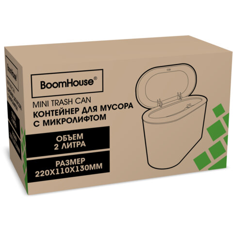 Компактный и вместительный контейнер для мусора BOOMHOUSE идеально подходит для использования в офисах, школах, различных учреждениях.