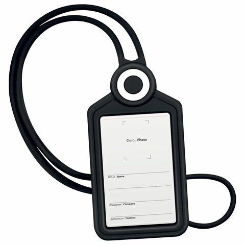 Тип бейджа: для проездных, пропусков, карт Тип крепления: лента Положение: вертикальное Количество в комплекте: 1 шт. Размер вкладыша (ДхШ): 85х54 мм Размер бейджа (ДхШ): 135х72 мм Серия: Silicone Цвет крепления: черный Материал корпуса: силикон Цвет корпуса: черный Длина ленты/шнурка: 42 см Наличие картонной вставки: да
