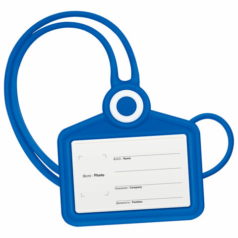 Тип бейджа: для проездных, пропусков, карт Тип крепления: лента Положение: горизонтальное Количество в комплекте: 1 шт. Размер вкладыша (ДхШ): 54х85 мм Размер бейджа (ДхШ): 100х102 мм Серия: Silicone Цвет крепления: синий Материал корпуса: силикон Цвет корпуса: синий Длина ленты/шнурка: 42 см Наличие картонной вставки: да