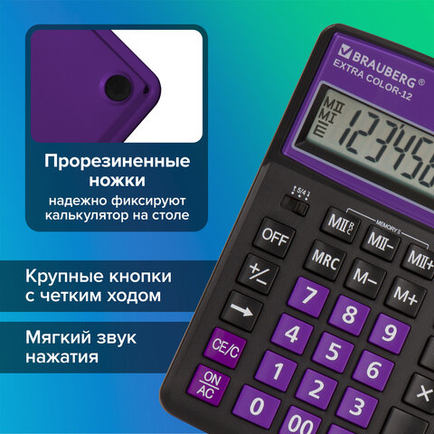 Настольный калькулятор BRAUBERG EXTRA COLOR-12-BKPR. Большой дисплей с увеличенным углом обзора, устойчивый корпус и клавиатура с цветной дифференциацией для эффективной работы с максимальным комфортом.