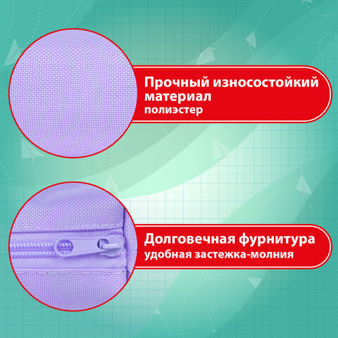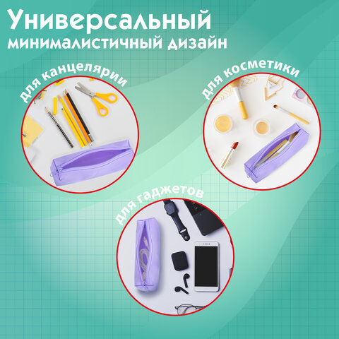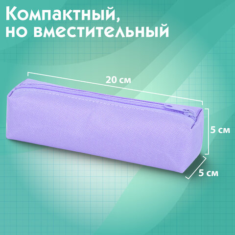 Тип товара: пенал-тубус Застежка: молния Назначение: для девочек Количество отделений: 1 Материал: полиэстер Серия: STANDART Дизайн: Pastel purple Базовый цвет: пастельный фиолетовый Длина: 20 см Ширина: 5 см Упаковка: прозрачный пакет