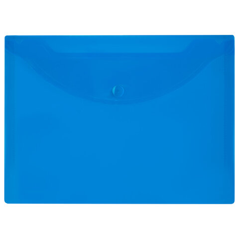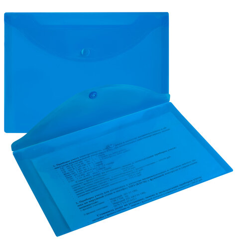 Папка-конверт с кнопкой МАЛОГО ФОРМАТА (250х135 мм), прозрачная, синяя, 0,18 мм, BRAUBERG, 224031