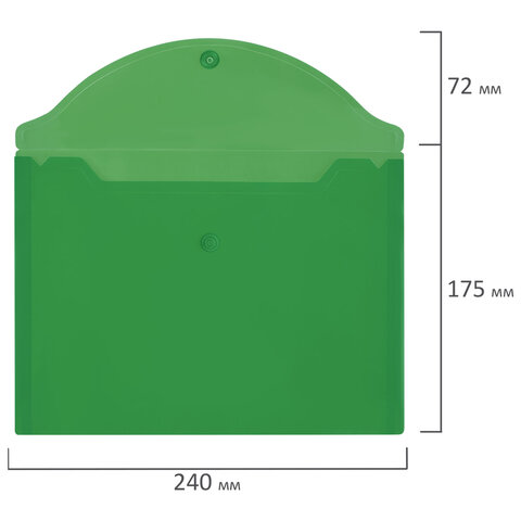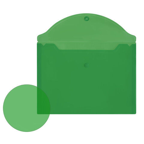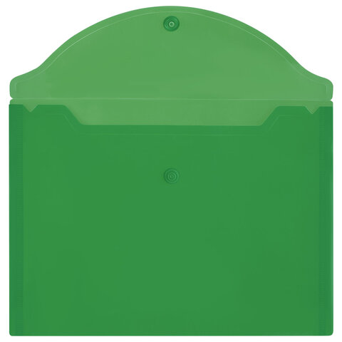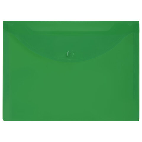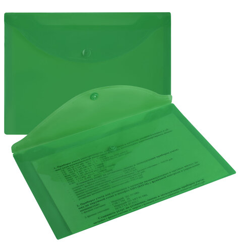 Папка-конверт с кнопкой BRAUBERG, А4, до 100 листов, прозрачная, зеленая, СВЕРХПРОЧНАЯ 0,18 мм,...