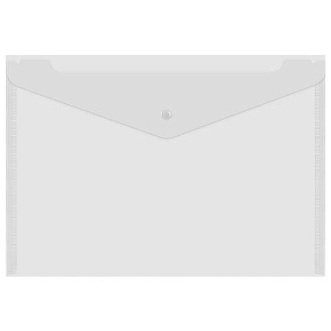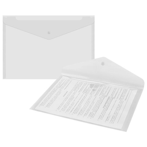 Папка-конверт с гладкой фактурой формата А4 изготовлена из плотного пластика толщиной 150 мкм. Закрывается на защелку-кнопку, что делает удобным частое использование и обеспечивает быстрый доступ к ее содержимому. Папка способна вместить до 100 листов стандартной плотности.