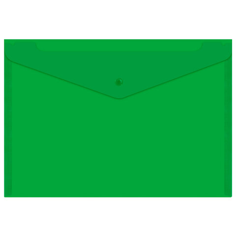 Папка-конверт с гладкой фактурой формата А4 изготовлена из плотного пластика толщиной 150 мкм. Закрывается на защелку-кнопку, что делает удобным частое использование и обеспечивает быстрый доступ к ее содержимому. Папка способна вместить до 100 листов стандартной плотности.