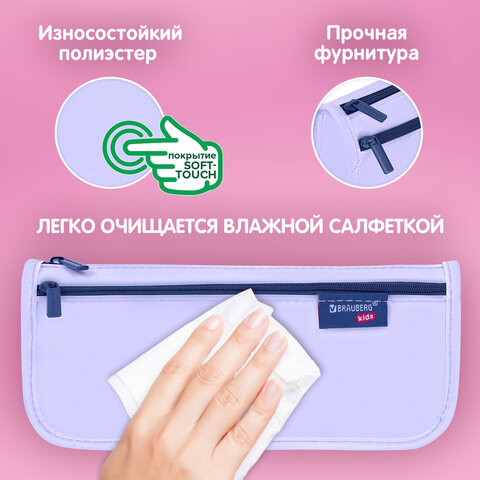 Пенал-косметичка BRAUBERG KIDS "Pastel purple" предназначен для хранения школьных принадлежностей, вмещает до 50 канцелярских предметов стандартного размера.