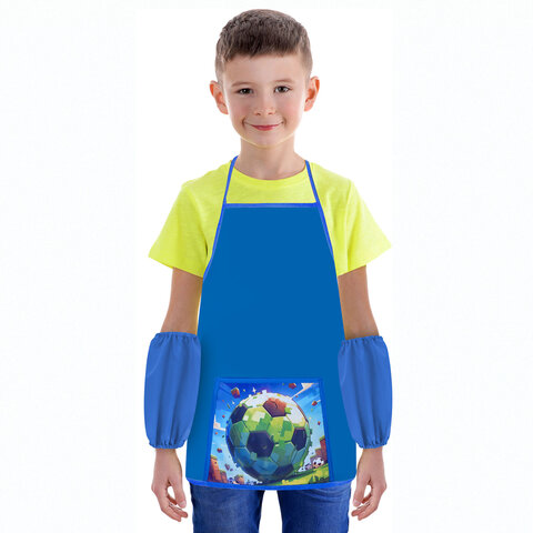Фартук с нарукавниками для уроков труда ПИФАГОР, 1 карман, 46х54 см, "Football match",...