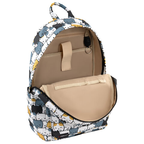 Рюкзаки серии DREAM – удобные, практичные и вместительные. Множество карманов и вместительное основное отделение позволят упорядоченно разложить большое количество вещей различных размеров в зависимости от целей использования рюкзака. Учебные пособия, канцтовары, папки формата А4, крупногабаритные предметы, например, одежда, вещи первой необходимости, такие как салфетки, платочки, бутылочка с водой, ключи, кошелек, документы и другие важные мелочи – все это можно с легкостью разметить в рюкзаке. Немаловажная деталь – это наличие специального уплотненного кармана на липучке, который можно использовать для журналов и тетрадей или для гаджета с диагональю экрана до 14". Также предусмотрен карабин для ключей.