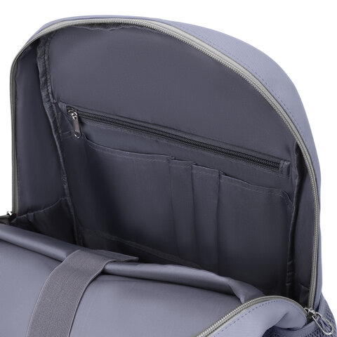 Одно вместительное отделение и множество карманов позволят упорядоченно разложить большое количество вещей различных размеров, в зависимости от целей использования рюкзака. Важная деталь – это отделение для ноутбука с диагональю экрана до 15,6". Плотные стенки и дно защитят гаджет от механических повреждений, а эластичная лента на липучке надежно его зафиксирует. В основном отделении имеются также карман на молнии и карман-органайзер для удобного размещения как письменных принадлежностей, так и документов, аксессуаров и других личных вещей.