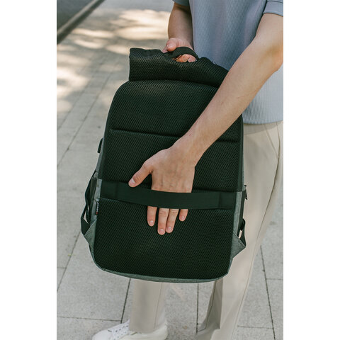 Для максимального комфорта при повседневном использовании рюкзак оснащён вентиляционной спинкой и мягкими регулируемыми лямками длиной до 45 см, которые обеспечивают удобство и снижение нагрузки при длительном ношении. Дополнительно предусмотрены как стандартная, так и мягкая ручки, позволяющие комфортно переносить рюкзак в руке даже при значительном наполнении.