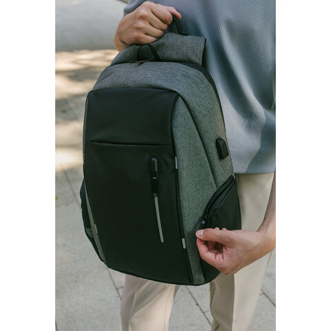 Рюкзак HEIKKI ELECT (ХЕЙКИ) универсальный, отделение для ноутбука, USB-порт, серый, 44х30х16 см,...