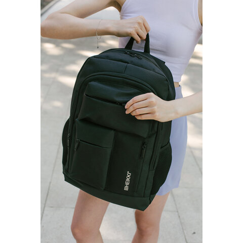 Основное отделение оснащено мягким карманом для ноутбука до 17 дюймов и дополнительными отделениями для организации ваших вещей. Всего имеется 6 карманов: три небольших передних на молнии, два боковых сетчатых кармана для бутылок или зонтов и небольшой потайной карман на спине для хранения ценных предметов в безопасности.