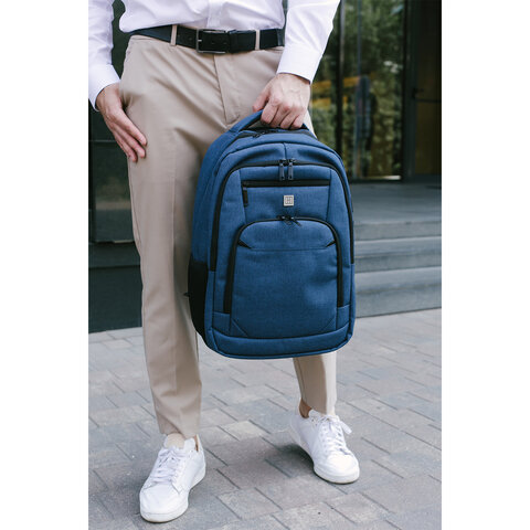 Его габариты 46x31x19 см и вес около 980 грамм обеспечивают вместительность без лишней тяжести, а синий цвет вписывается в любой образ. Материал изделия выполнен из качественного водостойкого полиэстера, что позволяет защитить вещи от влаги и загрязнений.