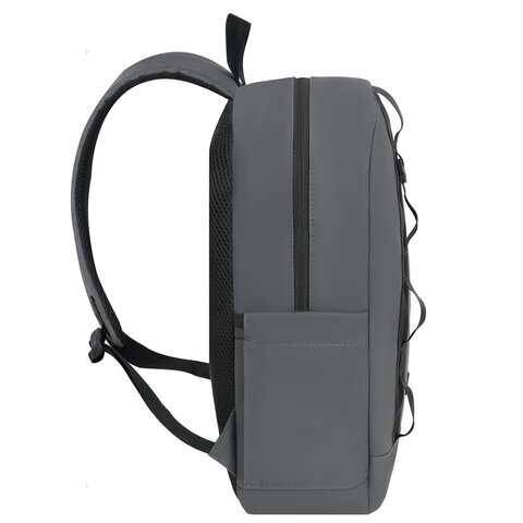 Вместительное основное отделение позволит разместить все необходимые предметы в зависимости от целей использования рюкзака. В данной модели предусмотрен уплотненный карман для ноутбука, который защитит технику от легких ударов и механических повреждений. Также внутри расположен отдельный карман на молнии для особо ценных вещей: документов, кошелька и мелочей. Сбоку есть внешние карманы для зонта, бутылки и других вещей, к которым необходим быстрый доступ.