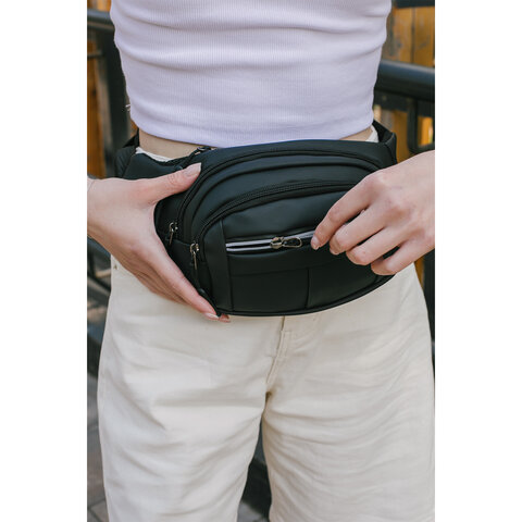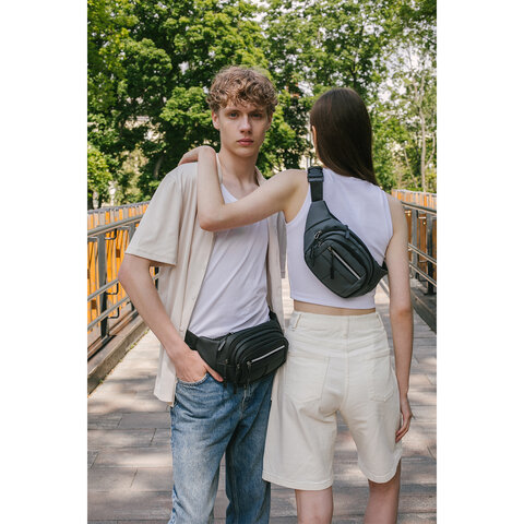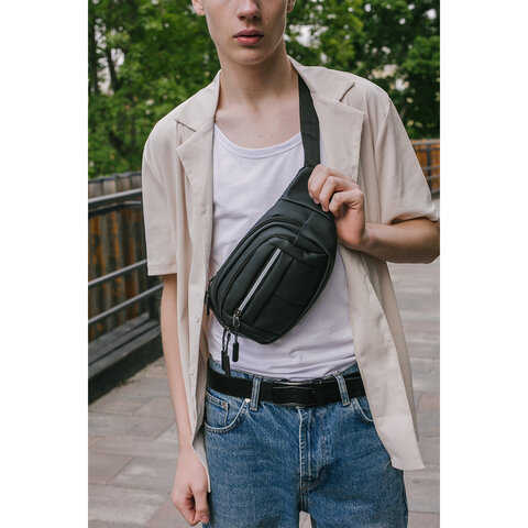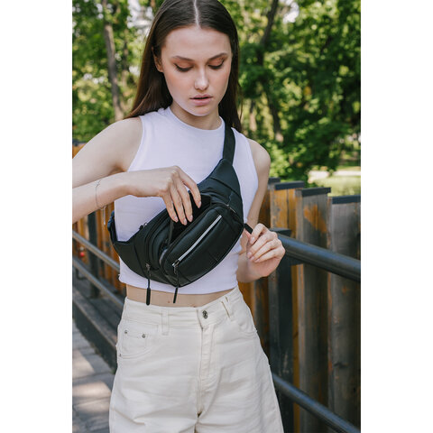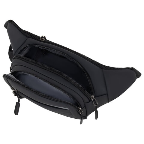 Применение: на пояс, через плечо, на плечо Количество отделений: 2 Количество карманов: 3 шт. Цвет: черный Высота: 14 см Ширина: 35 см Длина сумки с ремнем: 1.07 м Материал: полиуретан Серия: Prompt Вес: 140 г