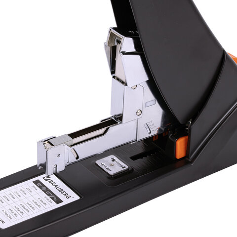 Мощный степлер BRAUBERG "Easy Press" предназначен для работы с большим объемом документов. При работе со степлером требуется прикладывать на 60% меньше усилий по сравнению с обычными моделями.