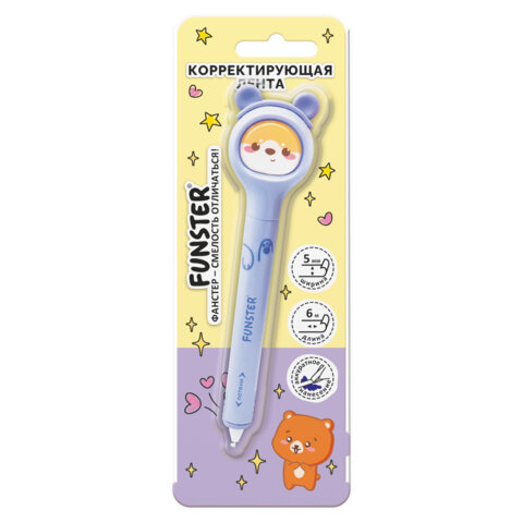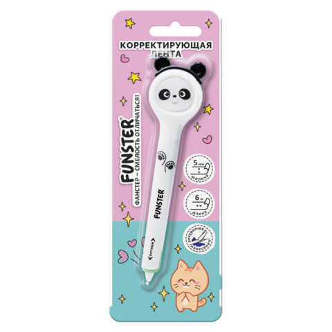 Корректирующая лента FUNSTER – это незаменимый помощник для мгновенного исправления рукописных и печатных текстов. Чудесные и милые зверята радуют глаз и делают ленту идеальным выбором для использования в школе, офисе и дома.