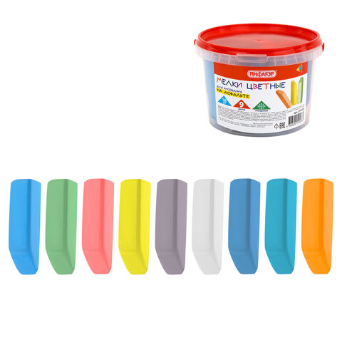 Цвет: ассорти Назначение: для асфальта Количество в упаковке: 18 шт. Количество цветов: 9 Форма корпуса: квадратная Серия: outdoor Длина: 7 мм Диаметр: 1.5 мм Твердость: твердый Упаковка: пластиковое ведро