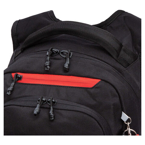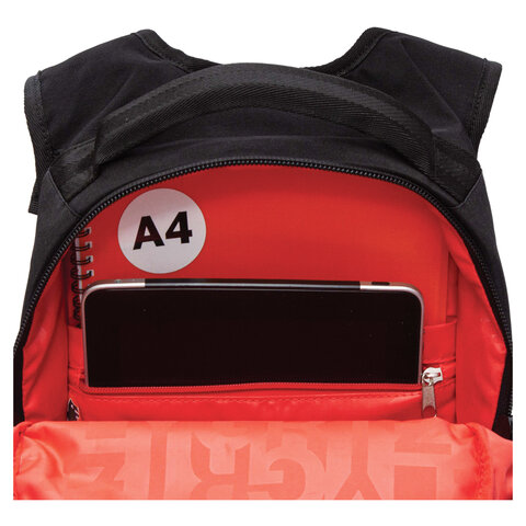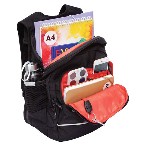 Рюкзак имеет два больших отделения: одно – для книг, документов и пособий формата А4, другое – для принадлежностей. Много карманов внутри и снаружи, карман для ноутбука 13". У рюкзака удобная ручка для переноски, дополнительная ручка-петля и два боковых кармана для бутылочки с водой.
