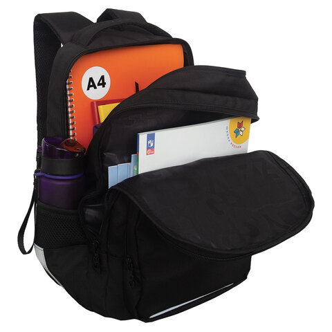Размер рюкзака позволяет поместить формат А4. Светоотражающие элементы с четырех сторон обеспечивают безопасность в темное время суток.