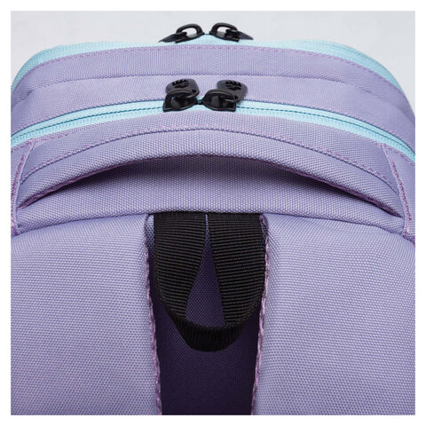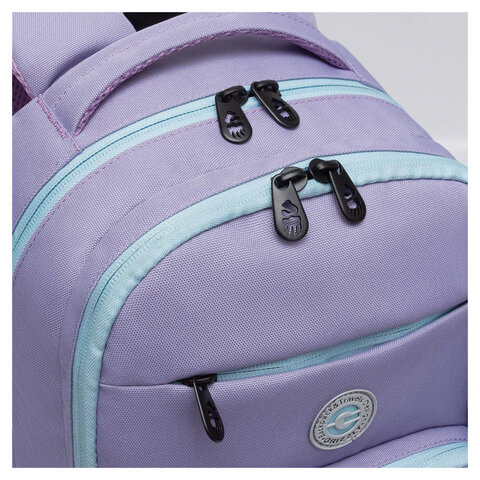 Рюкзак имеет два больших отделения: одно для книг, документов и пособий формата А4, другое — для мелких принадлежностей. Много карманов внутри и снаружи, жесткий карман на спинке и карман для ноутбука 13".