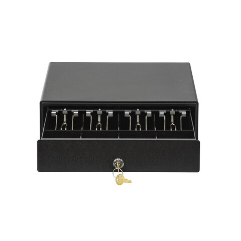 Компактный денежный ящик создан специально для кассовых мест с ограниченным рабочим пространством. Он идеально подходит для установки в магазинах у дома, небольших кафе и заведениях типа стритфуд, на островках в торговых центрах.