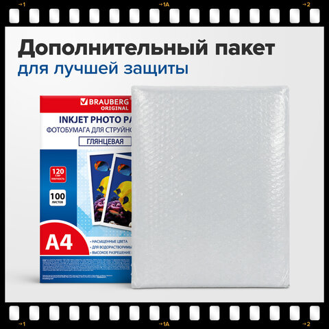 Фотобумага глянцевая, А4, 120 г/м2, односторонняя, 100 листов, ПАКЕТ, BRAUBERG ORIGINAL, 364412