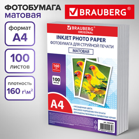 Матовая односторонняя фотобумага BRAUBERG подходит для всех типов струйных принтеров. Незаменима для печати рекламных материалов, текста, портфолио и фотопортретов. Напечатанное изображение не бликует, а тона имеют бархатистую глубину.