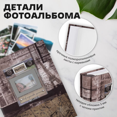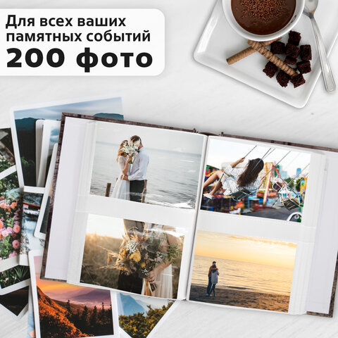 Фотоальбом BRAUBERG на 200 фотографий 10х15 см, твердая обложка, "Часы", коричневый,...