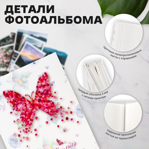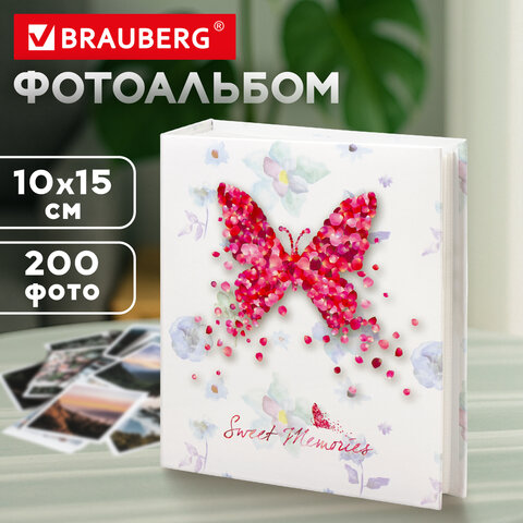 Фотоальбом BRAUBERG "Бабочка, крафт" на 200 фото 10х15 см, твердая обложка, термосварка,...
