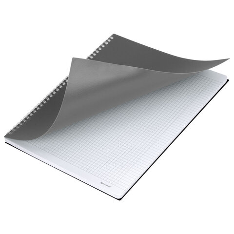 Тетрадь обложка пластик, А4 80 л., гребень мягкий (силиконовый), клетка, BRAUBERG, серый, 405357