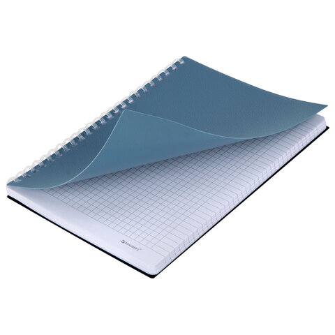 Тетрадь обложка пластик, А5 80 л., гребень мягкий (силиконовый), клетка, BRAUBERG, синий, 405360