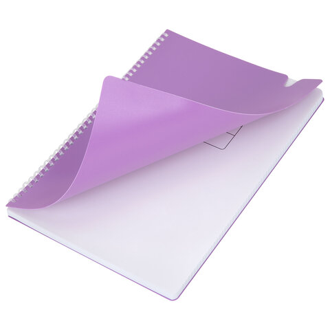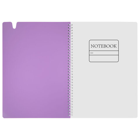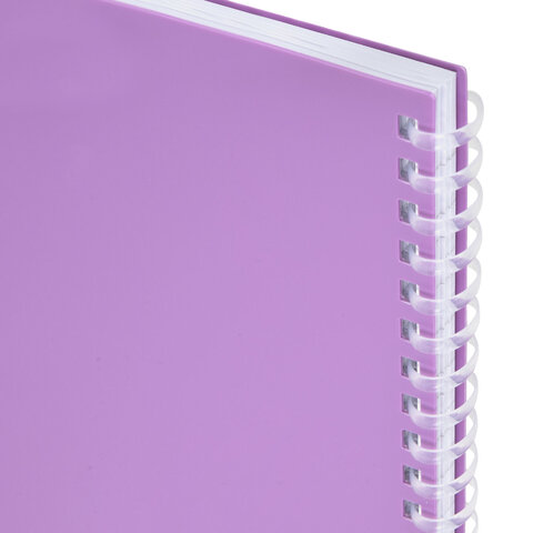 Тетрадь обложка пластик, А4 80 л., гребень мягкий, вырубка для ручки, клетка, BRAUBERG, сиреневый, 405374