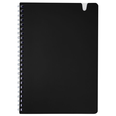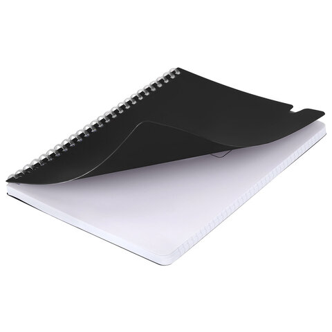 Тетрадь обложка пластик, А5 80 л., гребень мягкий, вырубка для ручки, клетка, BRAUBERG, черный, 405376