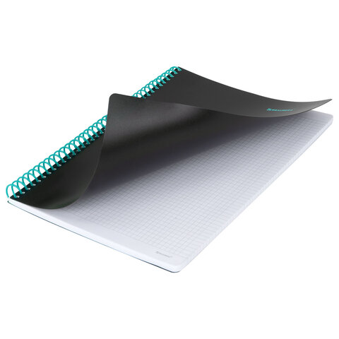 Прочная пластиковая обложка надежно защищает внутренний блок от повреждений и влаги, продлевая срок службы тетради. Тетрадь снабжена резинкой-фиксатором, что предотвращает замятие страниц. Внутри – 80 листов высококачественной офсетной бумаги плотностью 70 г/м2 и белизной 100%, обеспечивающей комфортное письмо. Удобная линовка в клетку с полями помогает вести структурированные записи. Листы скреплены спиралью. Формат А4 позволяет разместить большой объем информации, что делает тетрадь идеальным выбором для учебы, работы и деловых заметок.