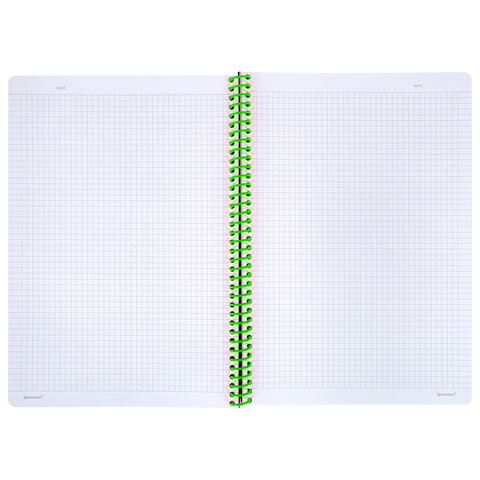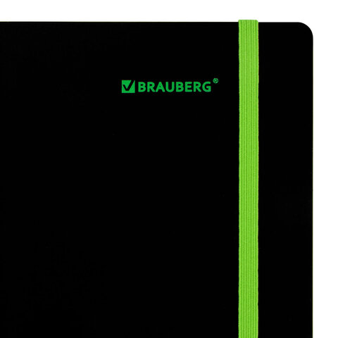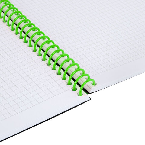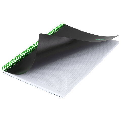 Тетрадь обложка пластик, А4 80 л., спираль пластик, резинка, клетка, BRAUBERG, черный/зеленый, 405383