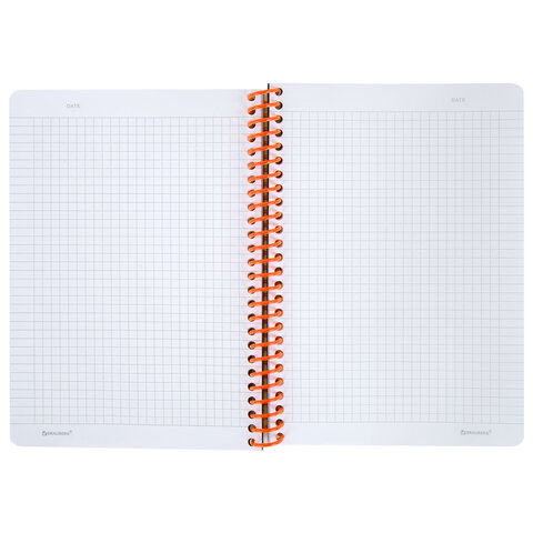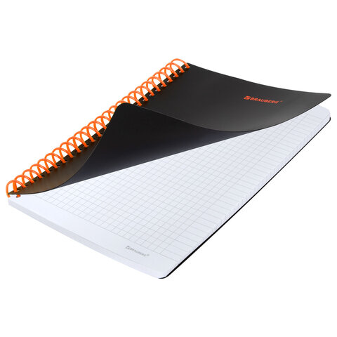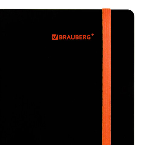 Тетрадь обложка пластик, А5 80 л., спираль пластик, резинка, клетка, BRAUBERG, черный/оранжевый, 405386
