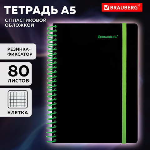 Прочная пластиковая обложка надежно защищает внутренний блок от повреждений и влаги, продлевая срок службы тетради. Тетрадь снабжена резинкой-фиксатором, что предотвращает замятие страниц. Внутри – 80 листов высококачественной офсетной бумаги плотностью 70 г/м2 и белизной 100%, обеспечивающей комфортное письмо. Удобная линовка в клетку с полями помогает вести структурированные записи. Листы скреплены спиралью. Тетрадь формата А5 – это удобное и практичное решение для учебы, работы и повседневных заметок. Она компактна, легко помещается в сумку или рюкзак, но при этом вместительна для удобного письма.