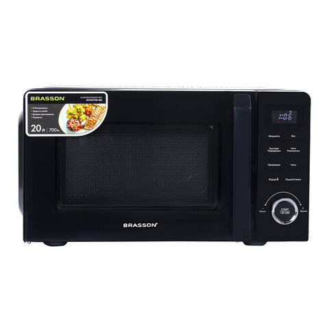Микроволновая печь BRASSON (БРАССОН) MW2070D-8BL, 20 л, 700 Вт, таймер, 8 АВТО ПРОГРАММ, дисплей, защита от детей, черная, 454979