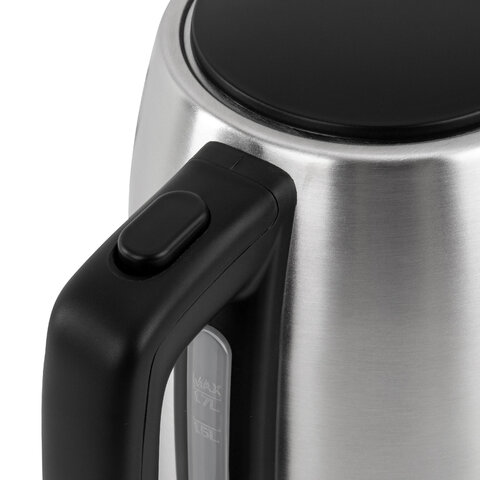 Мощность чайника составляет 2200 Вт, что позволяет вскипятить воду всего за несколько минут. Объёма 1,7 л достаточно для приготовления кофе или других напитков на 6-7 человек за один раз. Он подойдёт как для большой семьи, так и для офиса. Индикация включения и индикатор уровня воды делают использование чайника ещё более удобным.
