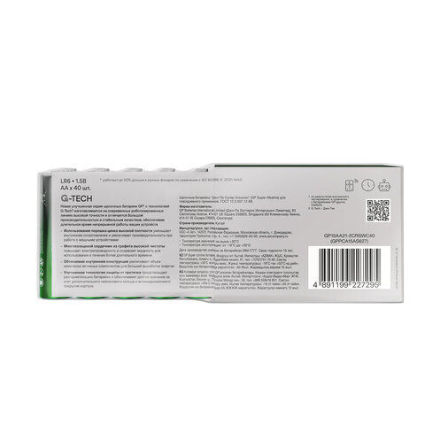 Большая упаковка батареек GP позволит иметь отличный запас источников энергии для приборов и на многие месяцы забыть о необходимости покупки новых батареек.
