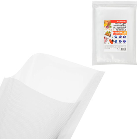 Пакеты для вакуумного упаковщика рифленые 20х30 см, КОМПЛЕКТ 50 шт., SONNEN, максимальный вакуум,...
