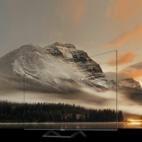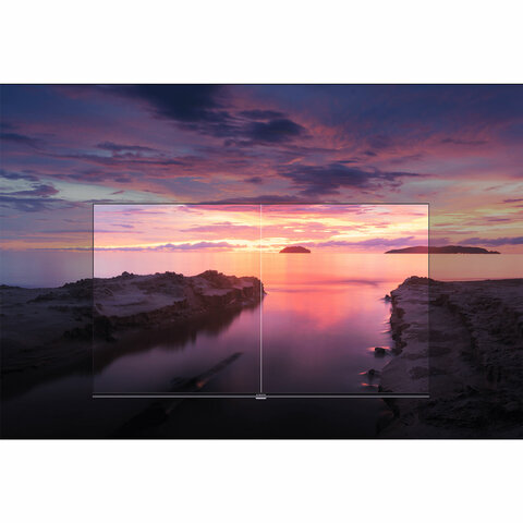 Конструкция с ультратонкой рамкой обеспечивает высокое соотношение размера экрана и корпуса, значительно превосходящее соотношение стандартных телевизоров. Когда экран включен, практически невозможно заметить границу изображения, что обеспечивает более полное погружение при просмотре.