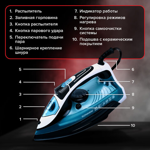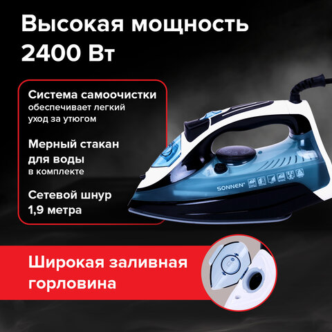 Утюг SONNEN SI-2283 обладает отличными характеристиками и с легкостью разглаживает любые складки. Подходит как для сухого глажения, так и для глажения с паром.